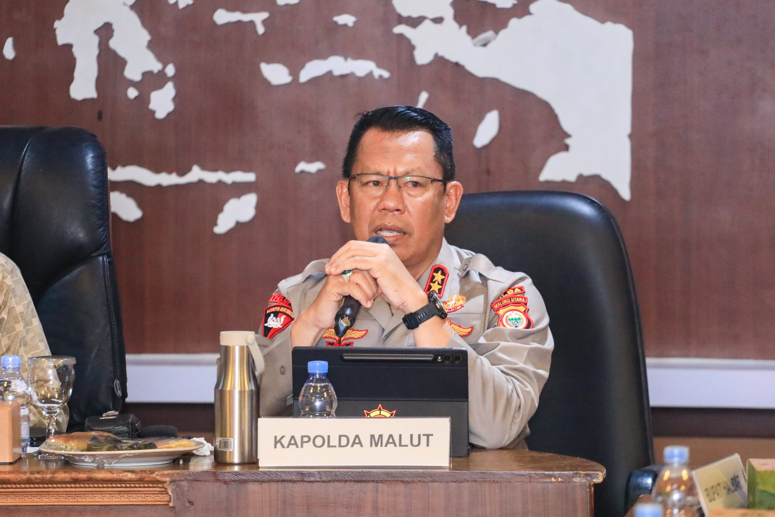 HUMAS POLDA MALUT – Kapolda Maluku Utara Irjen Pol Waris Anggono menghadiri pertemuan antara Wakil Gubernur Maluku Utara, Sarbin Sehe, dan jajaran Forum Komunikasi Pimpinan Daerah (Forkopimda) Kabupaten Halmahera Barat dan Halmahera Utara.