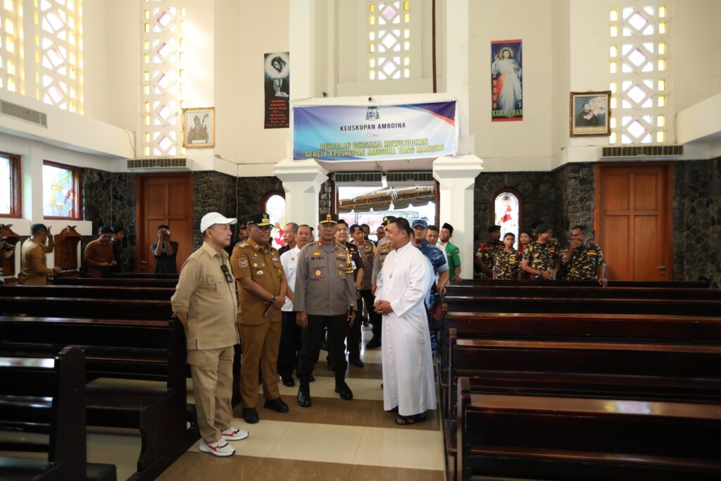 Kepala Kepolisian Daerah Maluku Utara, Irjen Pol. Midi Siswoko, S.I.K. melaksanakan peninjauan pengamanan gereja dalam rangka perayaan Misa Natal tahun 2024. Selasa (24/12/2024).