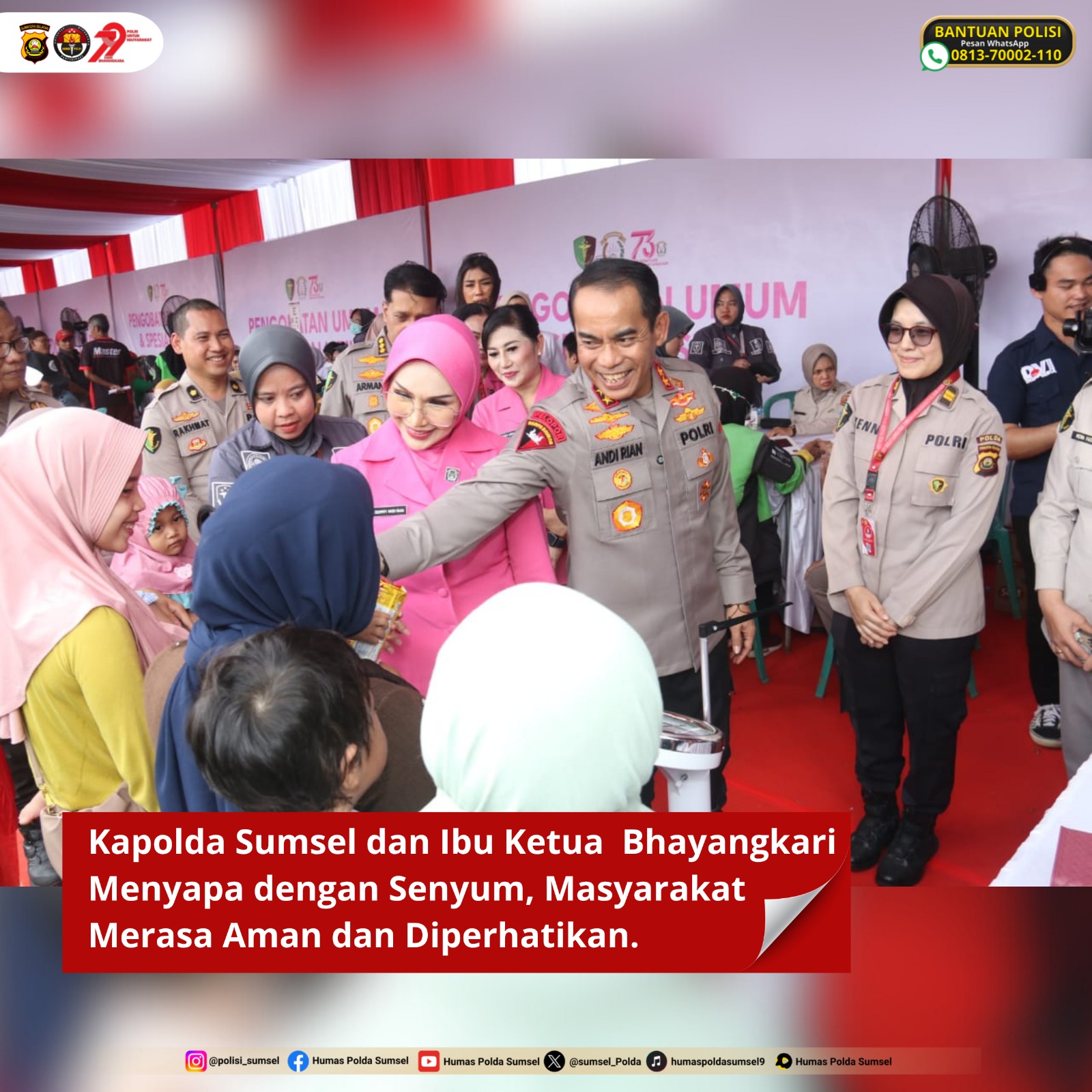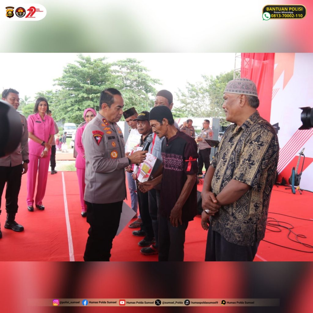 Kapolda Sumsel dalam sambutannya menyampaikan bahwa kegiatan ini bukan hanya bentuk kepedulian Polri terhadap masyarakat, tetapi juga sebagai bentuk penguatan hubungan yang harmonis antara Polri dan warga. “Harapan saya sebagaimana juga harapan masyarakat, semoga Polri, khususnya Polda Sumsel dan seluruh jajarannya, bisa makin dekat dengan masyarakat dan mampu memberikan pelayanan yang terbaik, sesuai dengan tema Hari Bhayangkara ke-79, yaitu ‘Polri untuk Masyarakat’,” ujarnya.