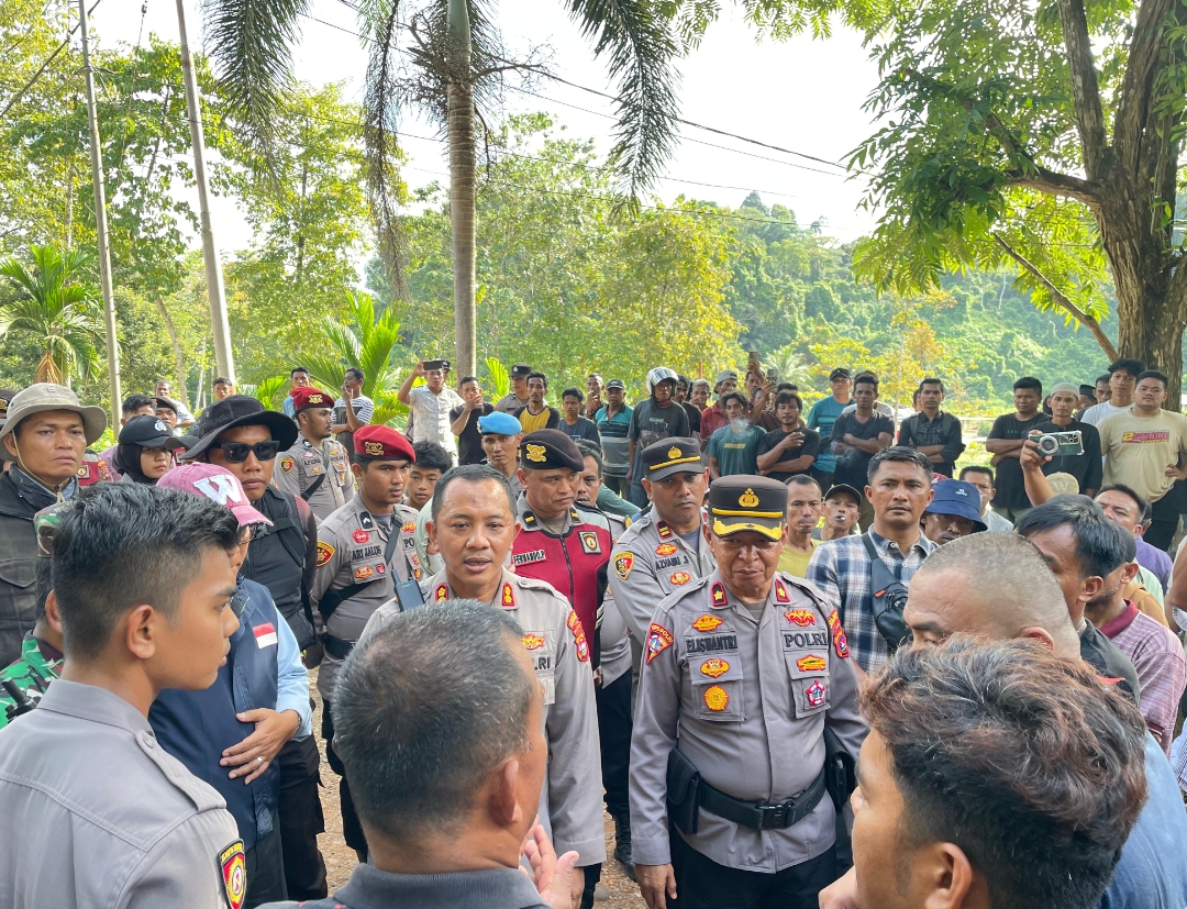 KompasNews, Kapolres Dharmasraya, AKBP Purwanto Hari Subekti, S.Sos., memimpin pengamanan Aksi Damai oleh masyarakat adat dari Jorong Durian Simpai dan Jorong Koto Baru, Nagari Koto Nan IV Dibawah, Kecamatan Sembilan Koto, pada Jumat (23/5/2025) siang.