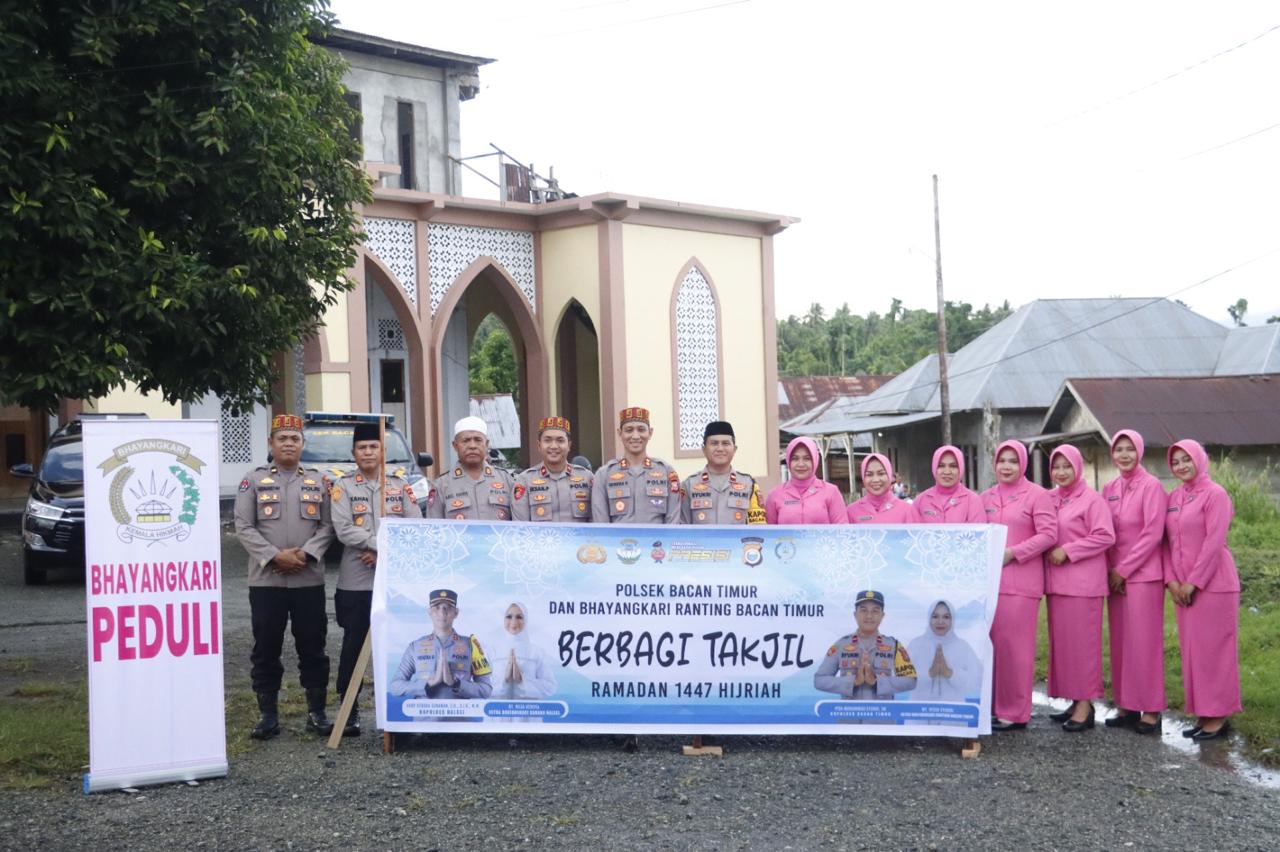Kegiatan pembagian takjil dalam rangka bulan suci Ramadhan 1447 H/2026 M dilaksanakan oleh jajaran Polres Halmahera Selatan pada Sabtu, 28 Februari 2026. Aksi sosial tersebut dipimpin langsung oleh Kapolres Halmahera Selatan AKBP Hendra Gunawan, S.S.I.K., M.M., didampingi Wakapolres Kompol Iksan Prananti, S.I.K., M.M., bersama para Pejabat Utama (PJU), Kapolsek Bacan Timur, serta Bhayangkari Polsek Bacan Timur.