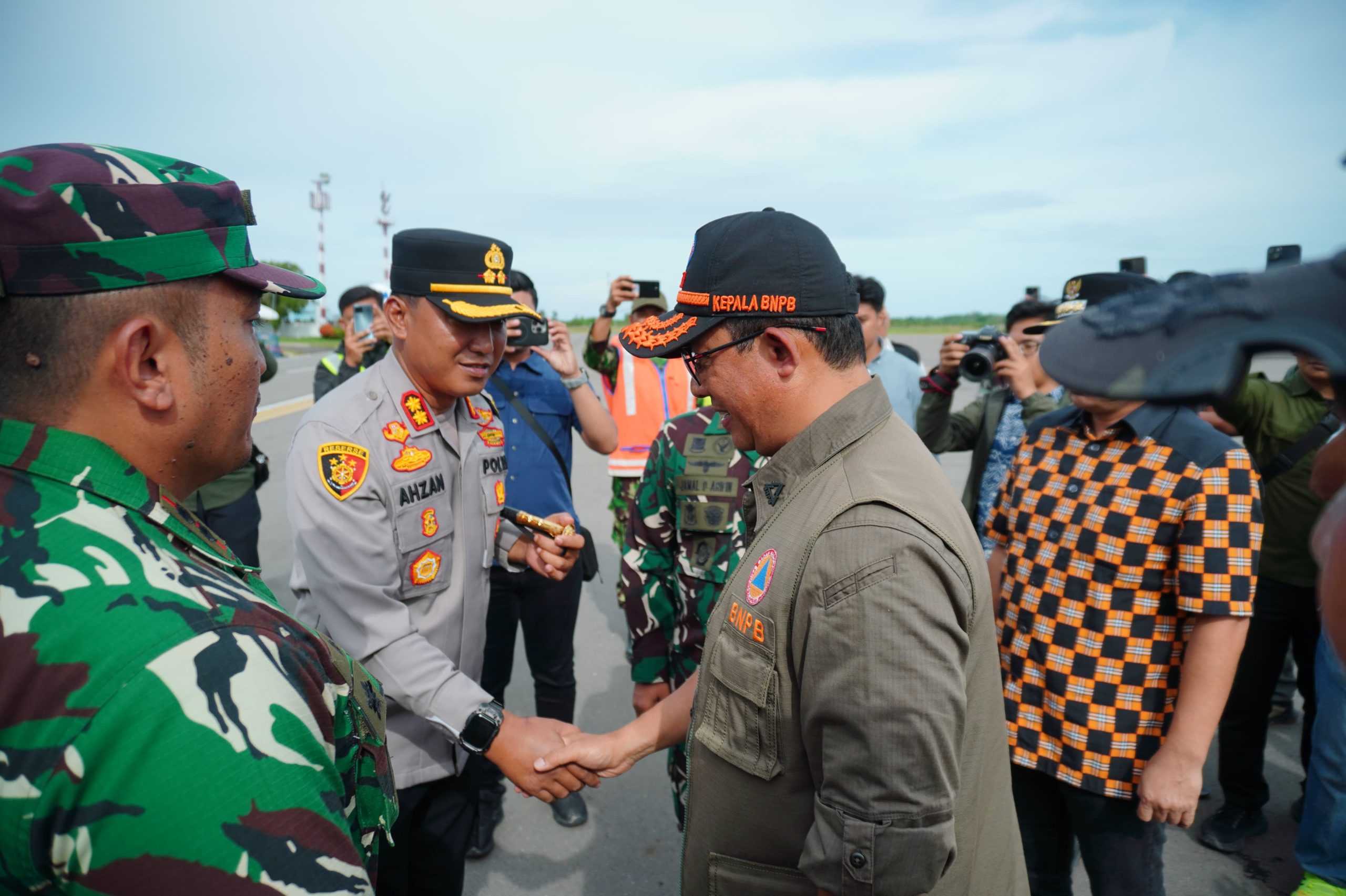 Lhokseumawe Kompasnews.co.id – Kapolres Lhokseumawe AKBP Dr. Ahzan., S.H., S.I.K., M.S.M., M.H menyambut langsung kedatangan Kepala Badan Nasional Penanggulangan Bencana (BNPB), Letjen TNI Suharyanto, di Bandara Malikussaleh, Aceh Utara, dalam rangka koordinasi dan peninjauan perkembangan penanganan pascabanjir di wilayah Lhokseumawe dan Aceh Utara, minggu (14/12/2025).