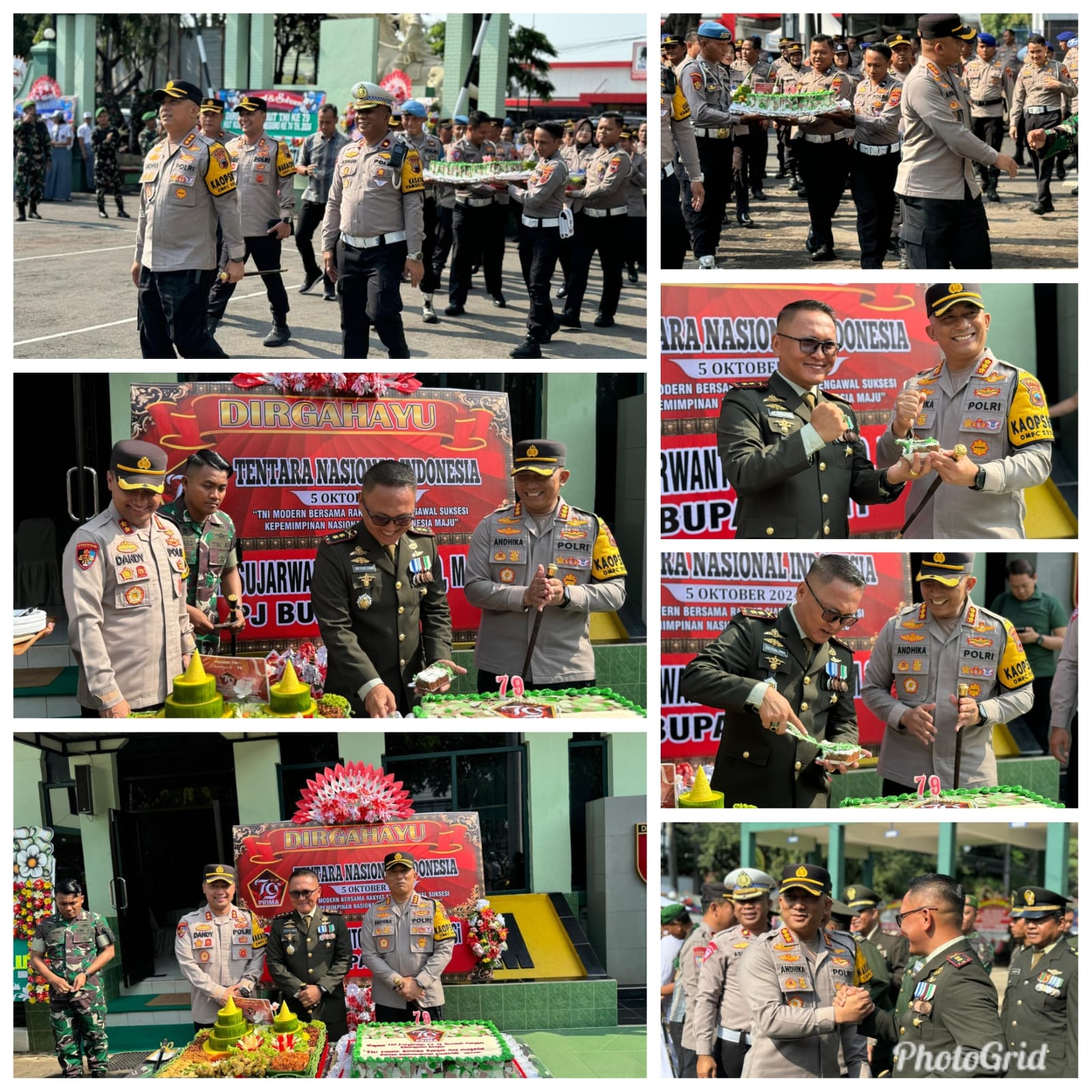 Kapolresta Pati langsung memberikan ucapan selamat HUT ke-79 TNI dengan pemberian kue Tart dengan ucapan Jayalah TNI Dirgahayu Ke-79 Teruslah Menjadi Kebanggaan Bangsa TNI Modern Bersama Rakyat Siap Mengawal Suksesi Kepemimpinan Nasional Untuk Indonesia Maju, kemudian dilanjutkan dengan pemotongan tumpeng.