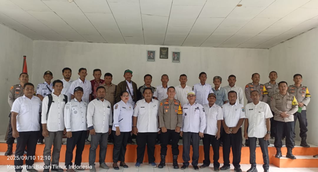 Rapat ini dipimpin langsung oleh Muhammad Sukri, Kapolsek Bacan Timur, dan dihadiri oleh Camat Bacan Timur, Camat Bacan Timur Tengah, Camat Bacan Timur Selatan, perwakilan kepala desa, serta Bhabinkamtibmas dari tiga kecamatan.