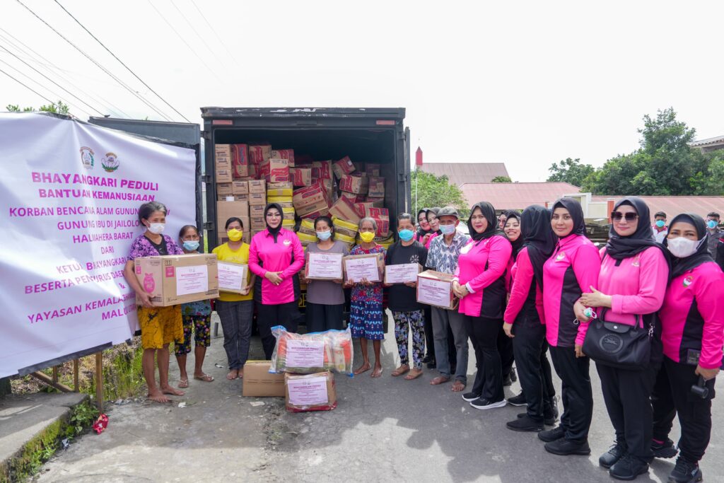 Ketua Bhayangkari Daerah Maluku Utara menyampaikan bahwa kegiatan tersebut dalam rangka melaksanakan bantuan kemanusiaan sebagai bentuk kepedulian Bhayangkari terhadap para korban erupsi gunung Ibu.