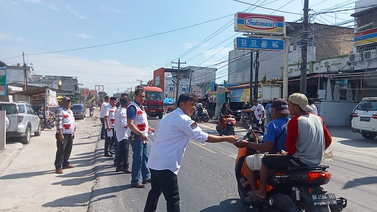 Usai deklarasi, ketua DPC Pejuang Bravo Lima yang juga Bakal calon Bupati Batu Bara Vicktor Oktopianus Saragih S. H membagikan ribuan stiker kepada masyarakat pengguna jalan.
