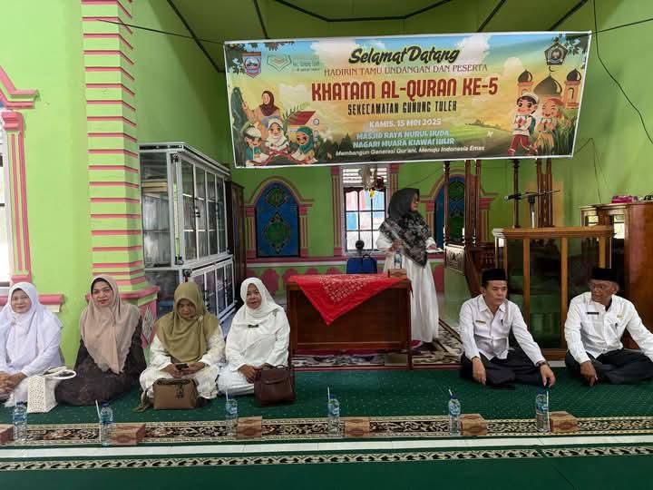 Ketua Tim Penggerak PKK Kabupaten Pasaman Barat, Ny. Sifrowati Yulianto, menghadiri Khatam Al-Qur’an ke-5 se-Kecamatan Gunung Tuleh yang digelar di Masjid Raya Nurul Huda, Nagari Muara Kiawai Hilir, Kamis (15/5).