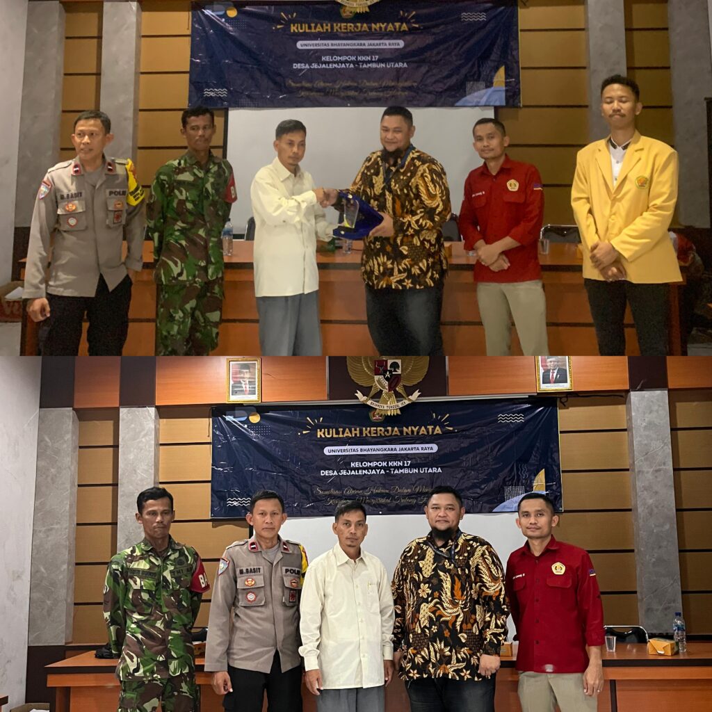 Menurut Dosen Ubharajaya Dr. Indra Lorenly Nainggolan, S.H., M.H. terjadinya kekerasan dalam rumah tangga adalah perselingkuhan, masalah ekonomi, budaya patriarki, campur tangan pihak ketiga, bermain judi, mahasiswa KKN telah berupaya memberikan kontribusi positif kepada masyarakat desa jejalen selama 14 mei-14 juni 2024. Melalui berbagai proker dan kegiatan yang telah dilakukan, mereka berusaha meninggalkan dampak yang berkelanjutan bagi kemajuan desa Jejalen Jaya. Acara penutupan KKN Kelompok 17 Fakultas Hukum Universitas Bhayangkara, dihadiri oleh Sekretaris desa (Sekdes) Pak Saiman Hermansyah, S.Pd.Bhabinkamtibmas Pak Mujibul Basith, Babinsa Pak Heri Susanto, Staff desa dan warga desa jejalen jaya.