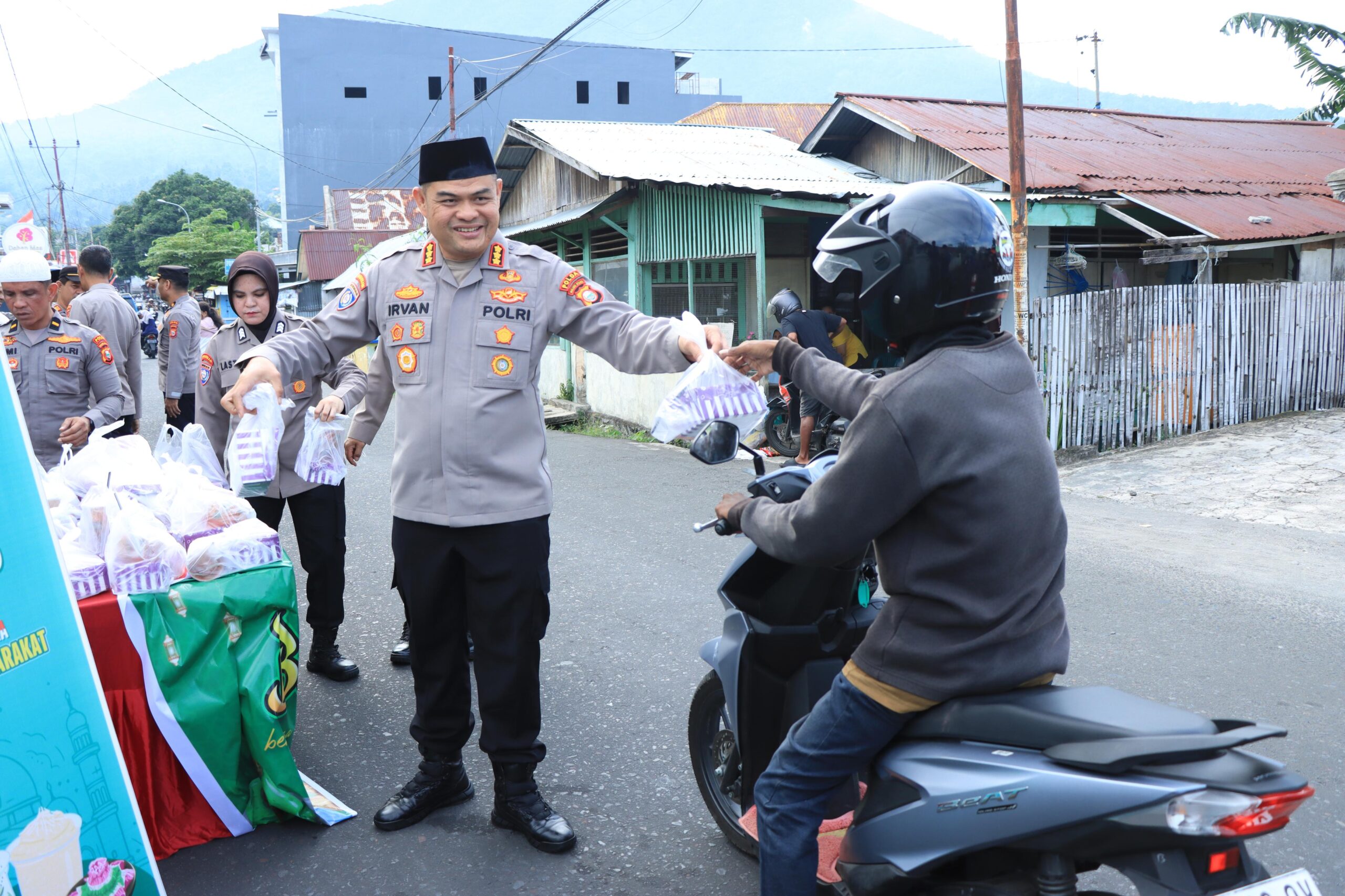 “Kami ingin berbagi kebahagiaan dengan masyarakat, terutama mereka yang masih berada di jalan jelang buka puasa tiba,” ujar Kombes Pol Moch. Irvan S.IK dalam kegiatan tersebut.