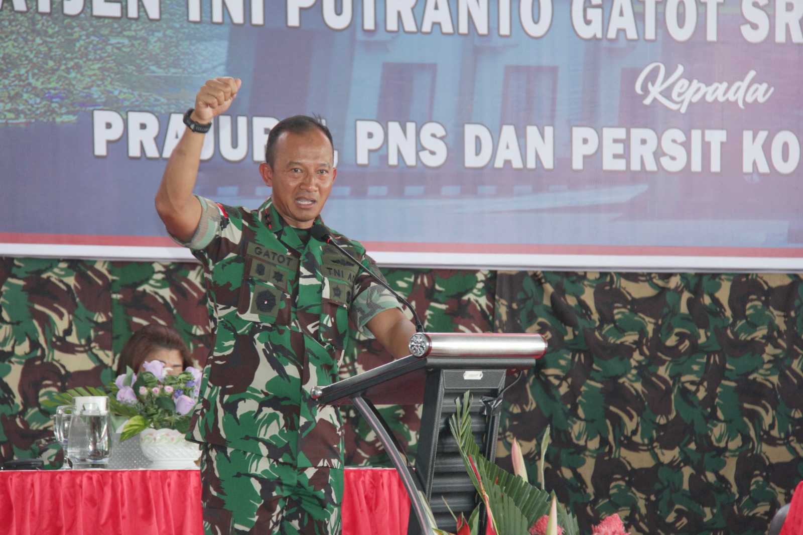 Pangdam XV/Pattimura Mayjen TNI Putranto Gatot Sri Handoyo, S.Sos., M.M. didampingi Ketua Persit Kartika Chandra Kirana Daerah XV/Pattimura Ny. Heny Putranto Gatot memberikan pengarahan kepada seluruh Prajurit, PNS dan Persit di jajaran Korem 152/Baabullah bertempat di Indoor Sport Center Makorem 152/Baabullah Jl. Am. Kamarudin No. 1 Kel. Sangaji Kec. Ternate Utara Kota Ternate, Senin (28/10/2024)
