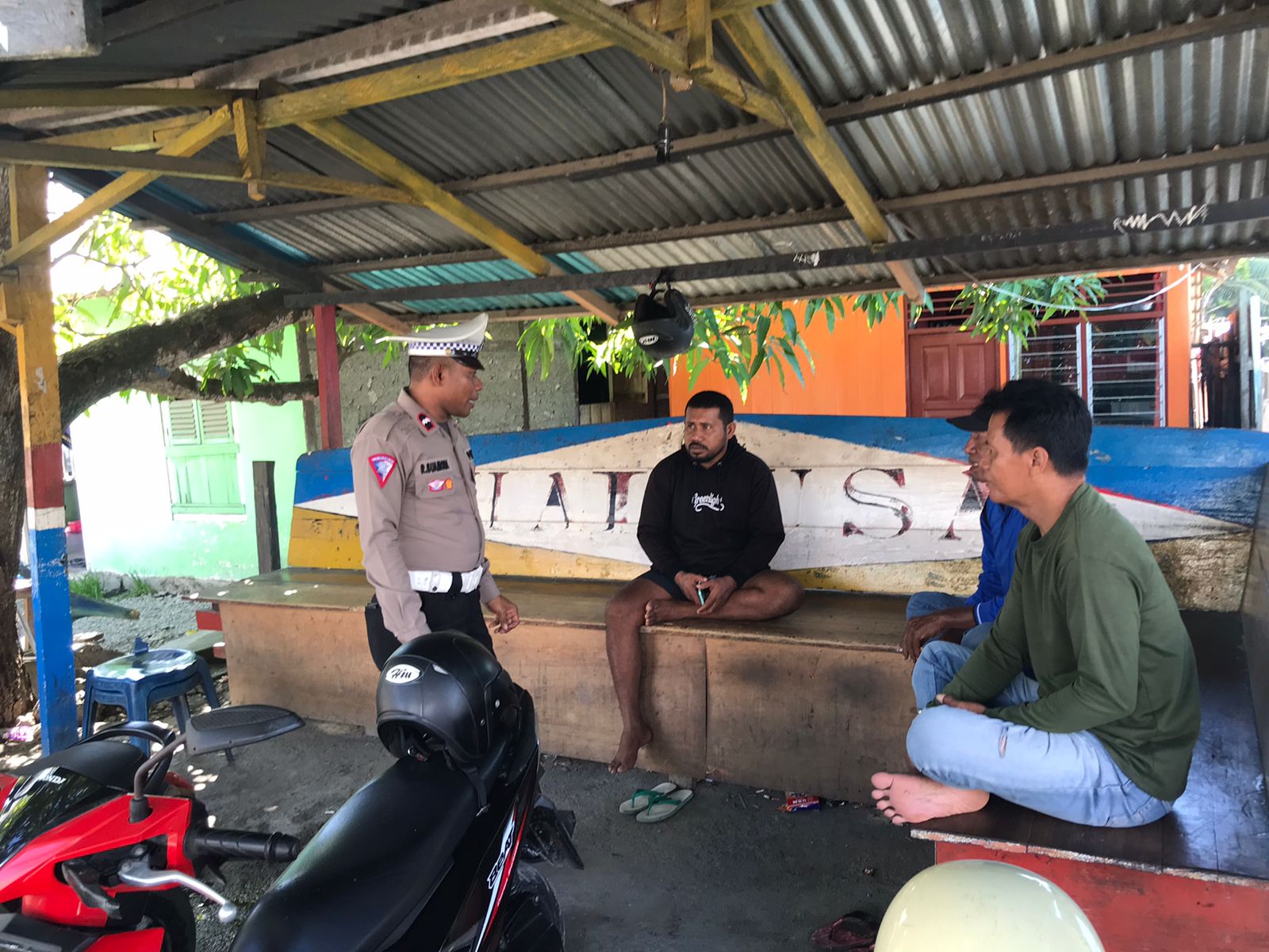 Personel Lalu Lintas Polres Sula melaksanakan kegiatan pendidikan masyarakat lalu lintas (Dikmas Lantas), kali ini sasarannya adalah masyarakat yang ada di pangkalan ojek Desa Fatce Kec. Sanana.