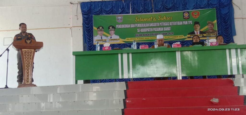 Pasbar kompasnews.co.id Menjelang Pemilihan Kepala Daerah (Pilkada) Tahun 2024, anggota Petugas Ketertiban atau Linmas PAM TPS se-Kabupaten Pasaman Barat dikukuhkan dan diberi pembekalan. Pengukuhan dilakukan langsung oleh Bupati Pasaman Barat Hamsuardi, didampingi Kasatpol PP dan Damkar Handoko, serta stakeholder terkait di Balerong Pusako Anak Nagari, Senin (23/9).