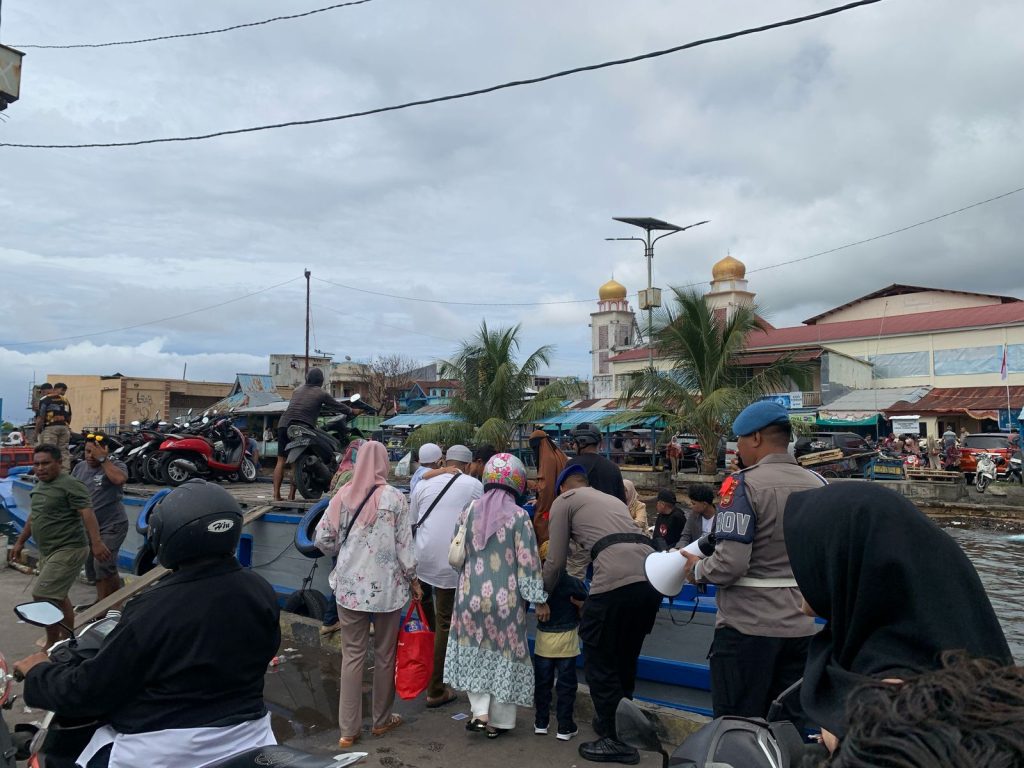 HUMAS POLDA MALUT – Aktivitas masyarakat di Pelabuhan Bastiong, Ternate, mengalami peningkatan signifikan pada hari kedua Lebaran Idulfitri, Selasa (1/4/2025).
