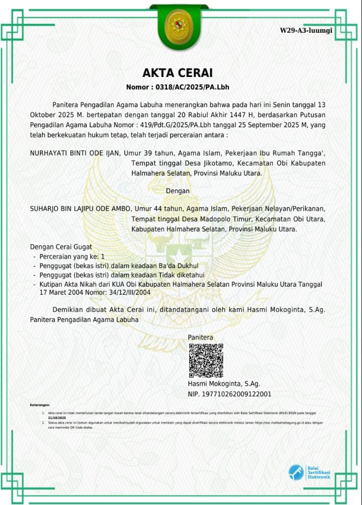 Namun berdasarkan data dan informasi yang dihimpun kompasnews laporan tersebut diduga dilayangkan karena Suharjo La Jipu Ode tidak memahami status hukum mantan istrinya, yang telah resmi bercerai dan memiliki akta cerai yang dikeluarkan oleh Pengadilan Agama Halmahera Selatan.