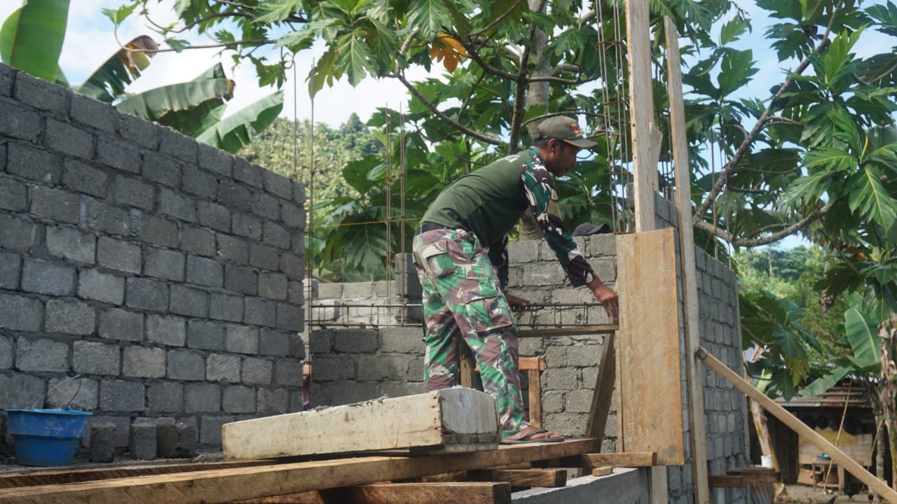 Terpantau di lapangan, Serma Nurafandi dan beberapa anggota serta bersama membangun Tiang Pondasi dan Pemasang Bambu penunjang persiapan Cor Mal MCK,