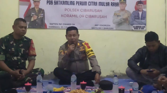 Bekasi – Kapolsek Cibarusah AKP Yendrizen, menyapa warga dengan mengajak silaturahmi melalui kegiatan ngopi kamtibmas, di satkamling Citra Mulya, Cibarusah, Rabu (25/9/24)