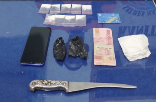 Hasil dari penggeledahan petugas berhasil menyita barang bukti berupa 9 buah Plastik Klip berukuran sedang berisikan Narkotika Sabhu dengan berat netto 22,707 Gram, 1 (satu) Unit Handphone Merk Nokia Warna Merah, dan Uang Tunai Rp. 850.000,_ (Delapan Ratus Lima Puluh Ribu Rupiah) dan 2 potong plastik berwarna hitam, 1 ATM BRI, Satu Pisau penguasaan Faisal dan di Akui kepemilikannya.