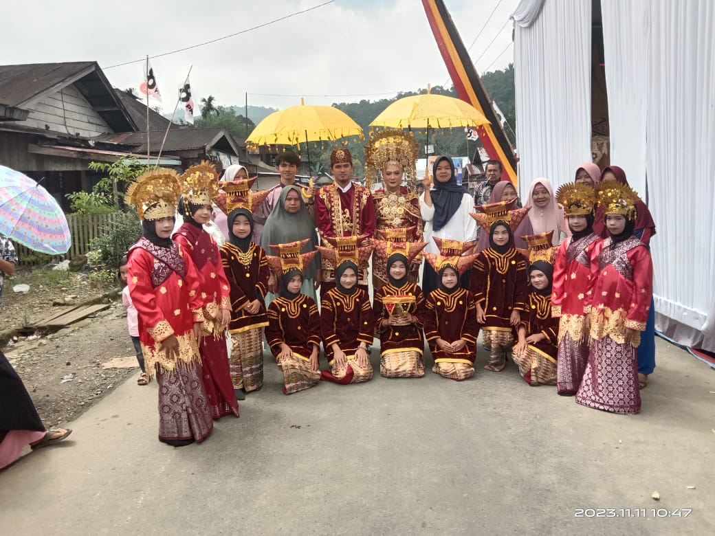 Kompasnews Pasaman Barat sabtu tanggal 11,11,2023 , engan mengucapkan bismillahirrahmanirrahim, anak cucu kemanakan Mangkuto alam pado api dari SD 03 talamau mempersembahkan sebuah tarian Minang kepada kedua mempelai atau pengantin baru, persembahan tarian anak cucu kemanakan Mangkuto alam pado api ini merupakan salah satu tradisi dari nenek moyang kami yang secara turun temurun.