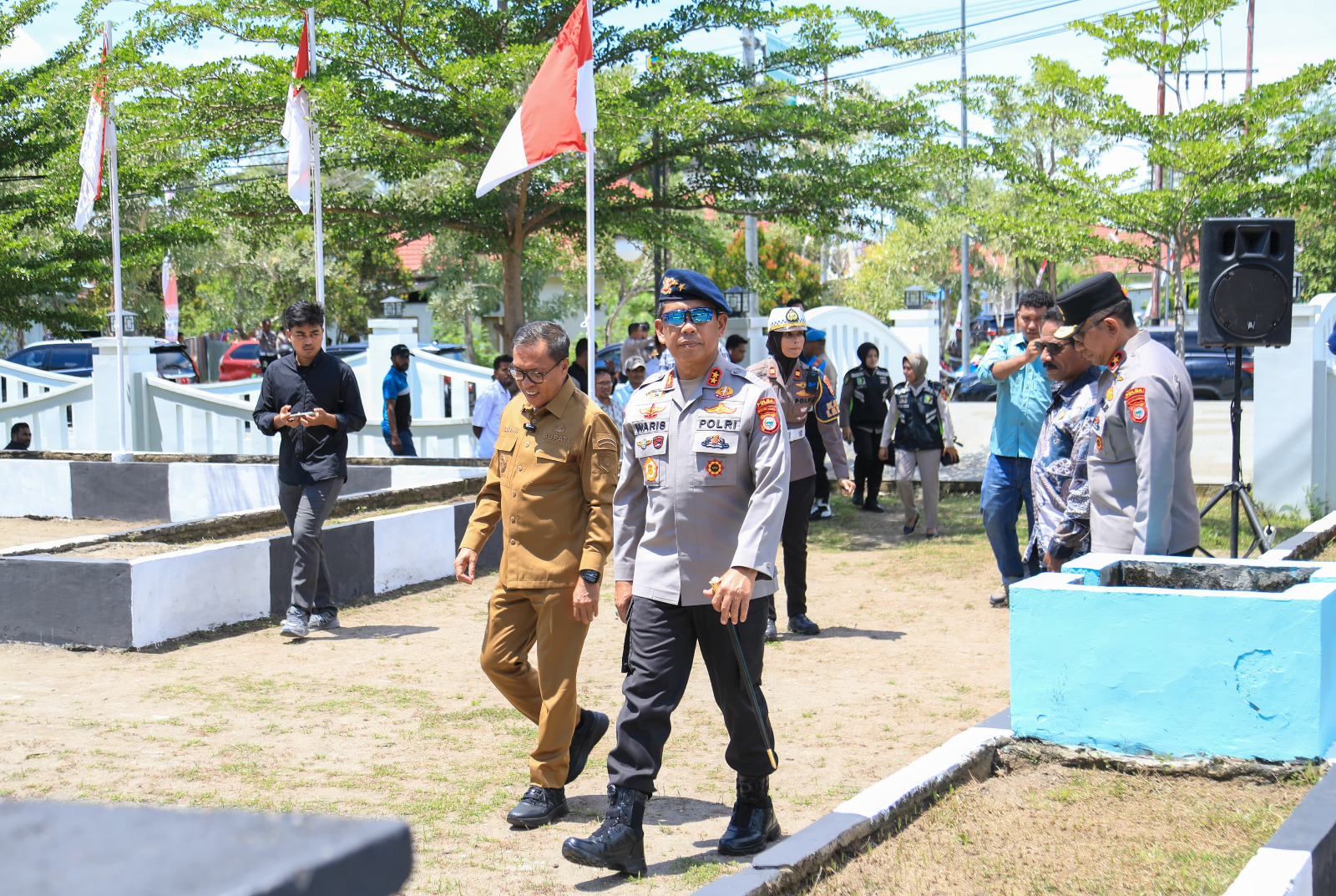 Turut hadir Wakapolda Maluku Utara Brigjen Pol. Stephen M. Napiun, S.I.K., S.H., M.Hum., Para Pejabat Utama Polda Malut, Bupati Halmahera Tengah Ikram Malan Sangadji, S.IP, M.Si., Kapolres Halmahera Tengah AKBP Fiat Dedawanto S.PD.T., S.I.K., serta unsur Forkopimda Kabupaten Halteng.