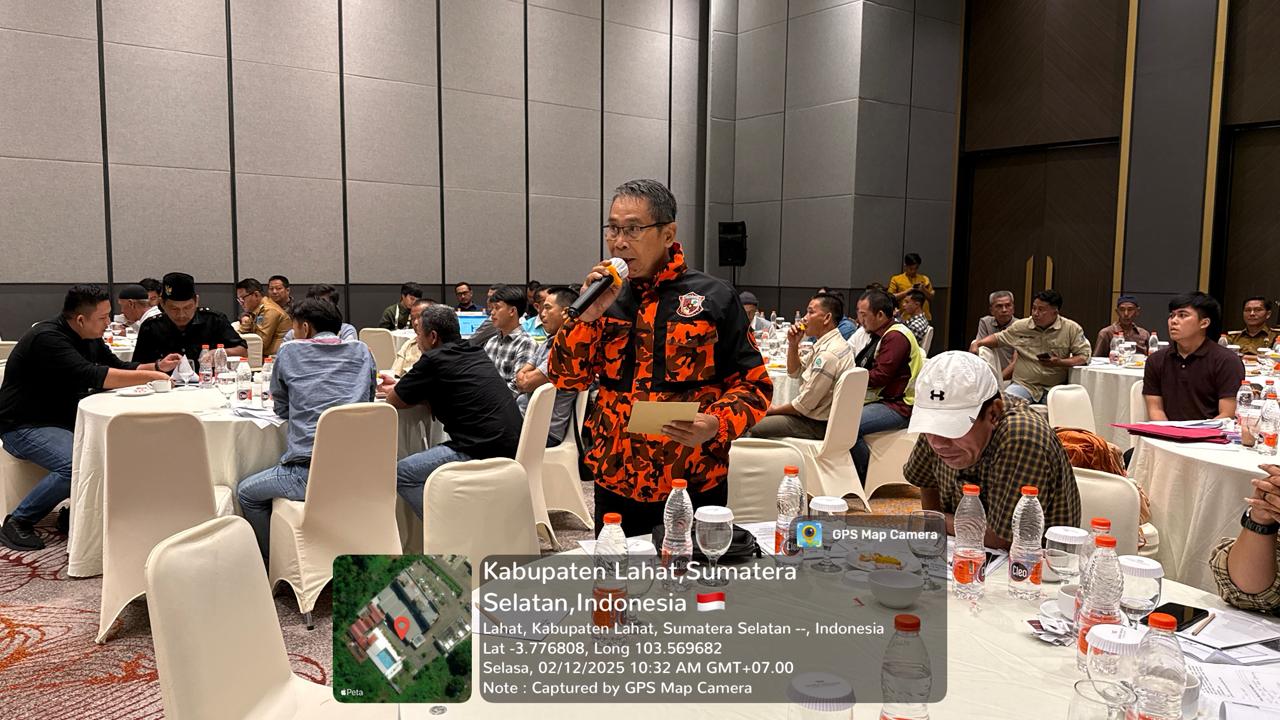 MPC Pemuda Pancasila Kabupaten Lahat menghadiri acara konsultasi publik pembangunan jalan khusus batubara PT ALR pada Selasa, 02 Desember 2025 di Ballroom Hotel Santika Lahat.
