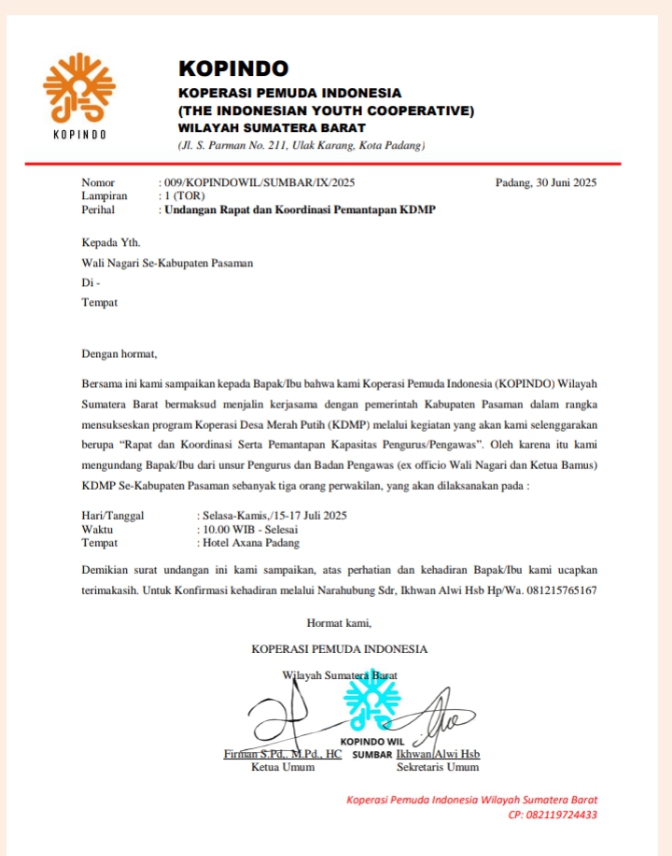 Alih-alih menjadi forum produktif yang membangun desa, kegiatan bertajuk “Rapat Koordinasi dan Pemantapan Kapasitas Pengurus/Pengawas KDMP” yang diselenggarakan KOPINDO Wilayah Sumatera Barat justru memantik kritik keras dari LSM P2NAPAS. Pasalnya, acara tiga hari tersebut (15–17 Juli 2025) digelar di Hotel Axana Padang—hotel berbintang di pusat kota, dengan biaya yang diyakini bersumber dari kas nagari.