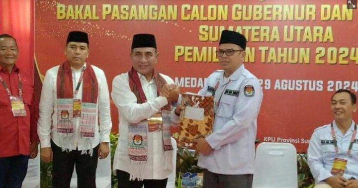 Pada kesempatan itu, Ketua KPU Sumut Agus Arifin mengatakan bahwa pihaknya akan memeriksa administrasi dokumen Edy dan Hasan, yang didukung oleh enam (6) Parpol yang terdiri dari Partai PDIP, Hanura, Gelora, Partai Ummat, Partai Buruh dan PKN.