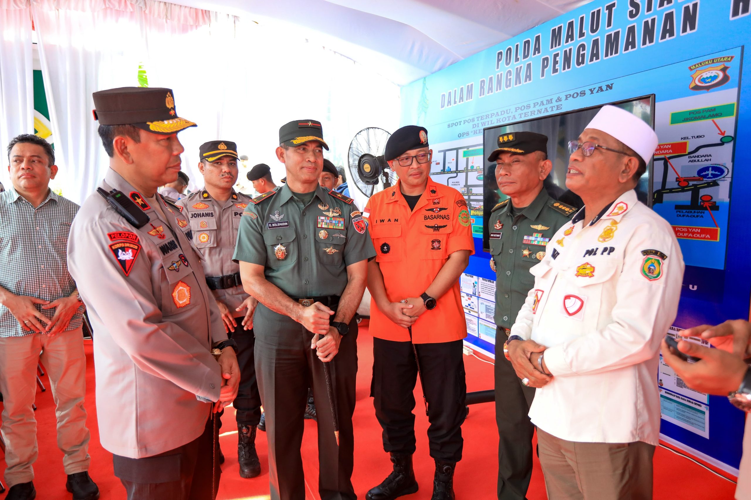 HUMAS POLDA MALUT – Kepala Kepolisian Daerah (Kapolda) Maluku Utara, Brigjen Pol. Drs. Waris Agono, M.Si., meninjau Pos Terpadu Operasi Terpusat Ketupat Kie Raha 2025 di Masjid Al Munawwar, Ternate, Kamis (27/3/2025).