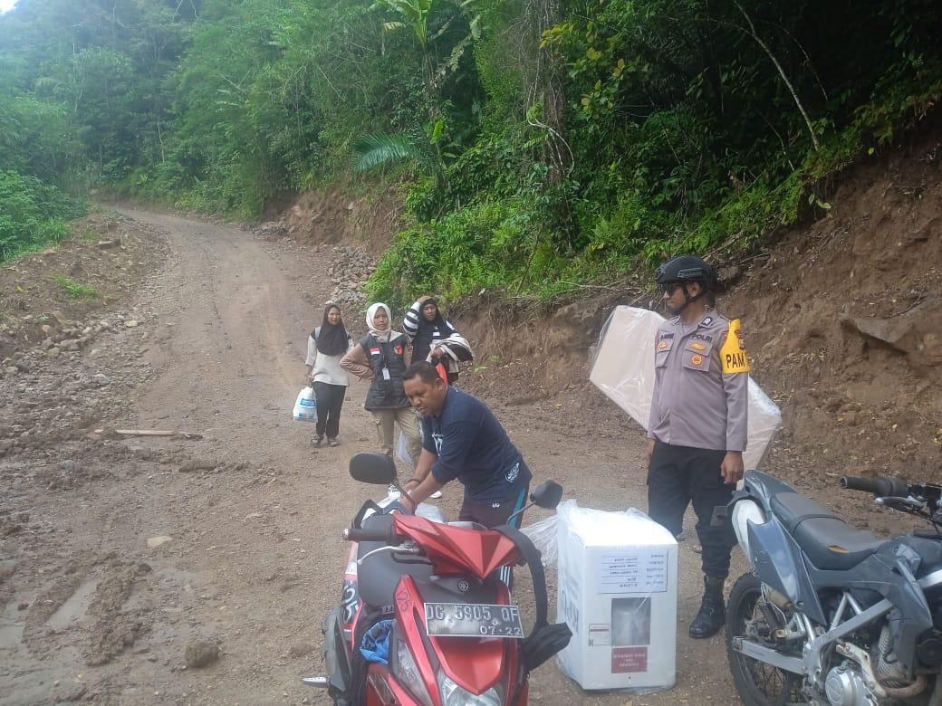 Demi memastikan kelancaran dan keamanan Pemilihan Kepala Daerah (Pilkada), aparat kepolisian menempuh medan terjal untuk mengawal pendistribusian logistik pemilu ke daerah-daerah terpencil.