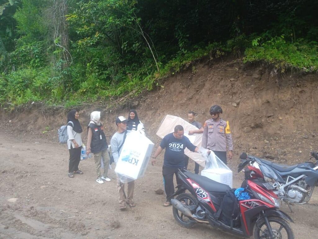 “Medan yang kami lalui sangat menantang, kami harus berjalan kaki menuju Lingkungan Talaga Puncak dengan berjalan kaki memikul kotak suara Pemilu 2024, motor hanya sampai di setengah perjalanan”. Kata Brigpol Safril, Selasa, (26/11/2024).