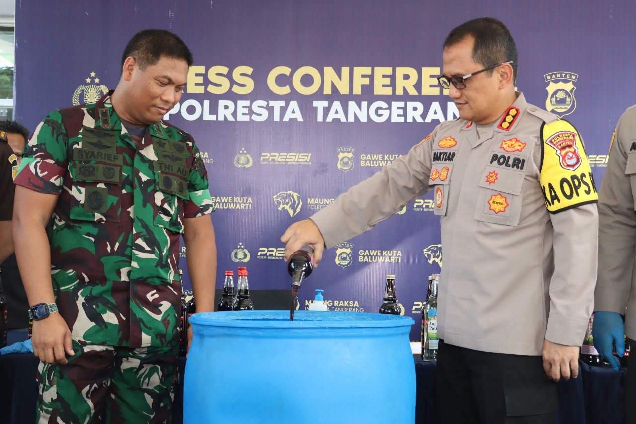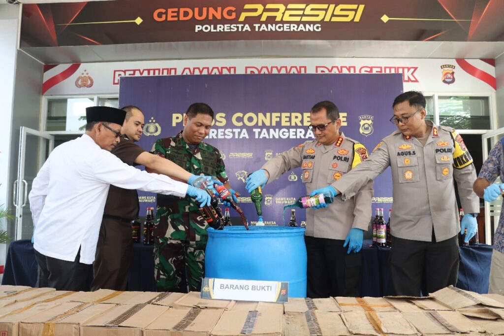 Tangerang – Dalam rangka kegiatan rutin yang ditingkatkan (KRYD) terkait peredaran minuman keras, Polresta Tangerang telah berhasil mengamankan sejumlah barang bukti yang signifikan. Menurut pernyataan resmi dari Kapolresta Tangerang, Kombes Pol Baktiar Joko Mujiono, total 2412 botol minuman keras dari berbagai merek telah disita. Barang bukti tersebut dikemas dalam 201 dus, menunjukkan skala operasi yang cukup besar dan dampak signifikan dari upaya penegakan hukum ini.
