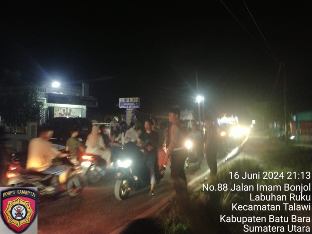Kompasnews.co.id- Sumatera Utara, Batu Bara- Patroli malam takbiran di wilayah hukum Kabupaten Batu Bara, yang di setiap tahun di laksanakan oleh kaum muslim, baik orang tua maupun remaja juga anak anak remaja/i, yang melaksanakan kegiatan takbiran keliling kampung, dari personil unit Samapta Polres Batu Bara dalam rangka pengamanan masjid serta pemeliharaan situasi kamtibmas.