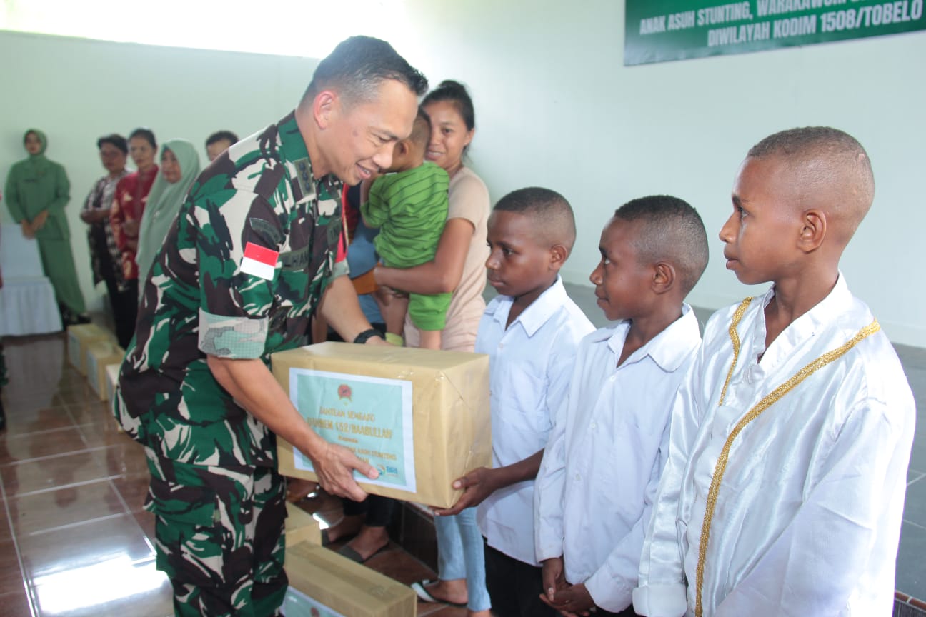 Pengentasan Stunting sendiri telah menjadi program prioritas jajaran Korem 152/Baabullah yang merupakan instruksi langsung dari Kepala Staf Angkatan Darat Jenderal TNI Maruli Simanjuntak dan Presiden Joko Widodo. Berbagai upaya telah dilakukan khususnya Kodim 1508/Tobelo seperti anak asuh stunting, Babinsa masuk dapur hingga bekerjasama dengan pihak swasta mendirikan Café Stunting dimana sebagian dari keuntungannya disalurkan untuk membantu pemenuhan gizi anak asuh stunting. Upaya tersebut telah membuahkan hasil dimana pada Tahun 2021 Halmahera Utara prevalensi stunting di angka 30,5 telah turun 24,3 dan di Tahun 2024 ini sesuai target Pemerintah secara Nasional di angka 14% hal tersebut dalam rangka menyiapkan bonus demografi untuk Indonesia Emas 2045.