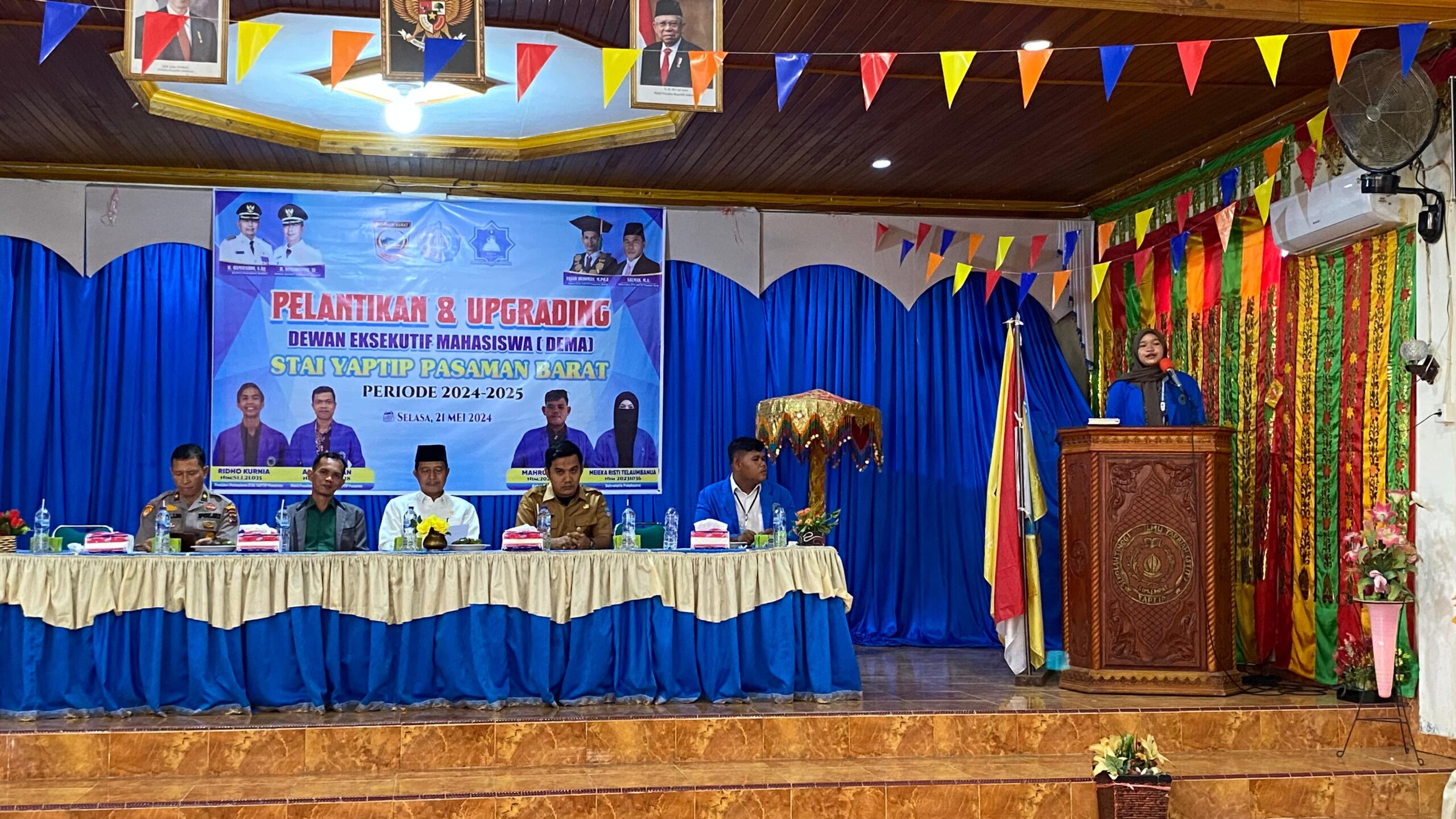 Dewan Eksekutif Mahasiswa (DEMA) periode 2024-2025 STAI Yaptip Pasaman Barat dilantik, Selasa (21/5). Pelantikan DEMA tersebut dihadiri oleh Wakil Bupati Risnawanto.