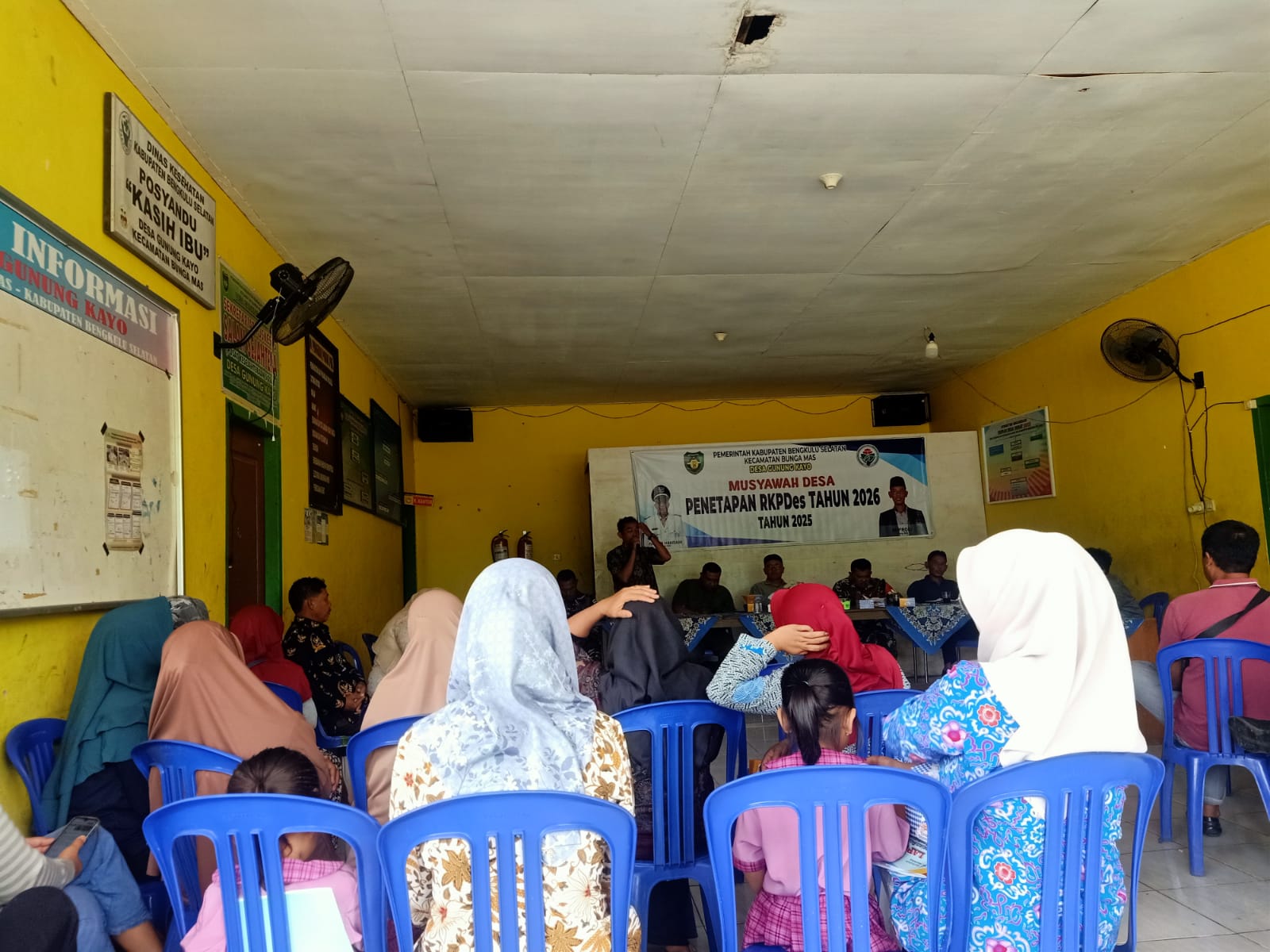 “Musyawarah yang dilaksanakan hari ini untuk menentukan arah pembanguan desa pada tahun 2026, sehingga dengan musyawarah dan mendengar usulan dari masyakarat pemerintahan desa dapat lebih fokus dengan rencana yang disepakati bersama masyakarat desa,” Ujar Kades Gunung Kayo.