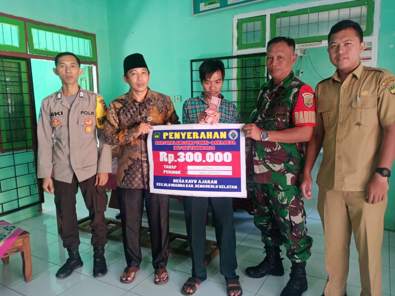 Pemdes Kayu Ajaran Kecamatan Ulu Manna Kabupaten Bengkulu Selatan membagikan Dana Bantuan Langsung Tunai Kepada masyarakat penerima manfaat. Dana bantuan ini bersumber dari Dana pemerintah Desa,