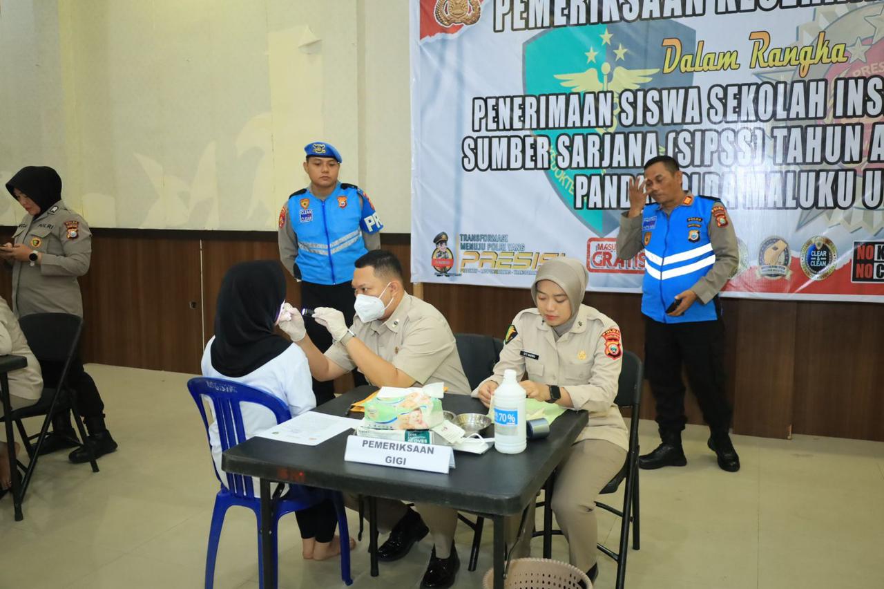 Kepolisian Daerah (Polda) Maluku Utara melalui Biro SDM Polda Maluku Utara dalam penerimaan siswa Sekolah Inspektur Polisi Sumber Sarjana (SIPSS) Tahun Anggaran 2025 telah memulai tahapan pemeriksaan kesehatan tahap I. Kegiatan ini berlangsung di Aula Polres Ternate pada Selasa, (21/1/2025).