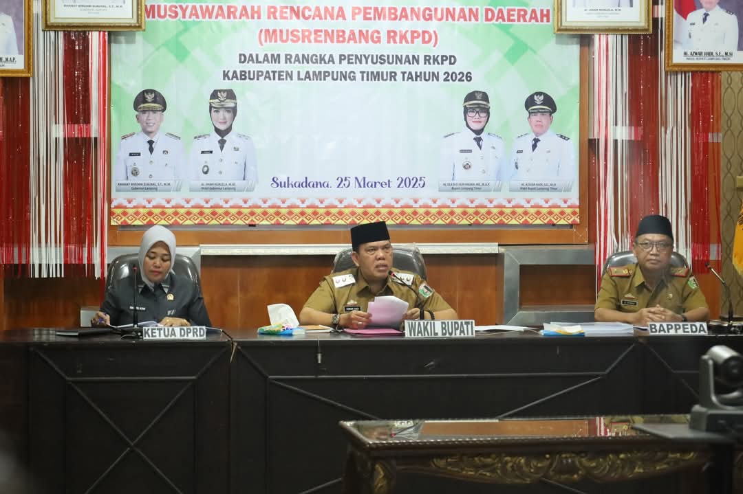 Lampung Timur -dalam rangka penyusunan, Rencana Kerja Pemerintah Daerah (RKPD) Kabupaten Lampung Timur Tahun 2026. Acara yang berlangsung di Aula Setdakab Lamtim, selasa (25 Maret 2025).