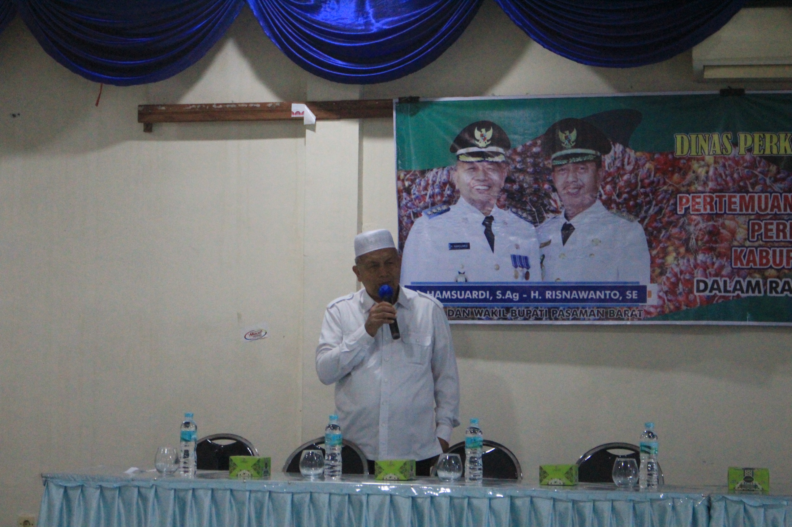 Perkebunan Kelapa Sawit Berkelanjutan (KSB) Kabupaten Pasaman Barat Tahun 2024–2029, Selasa (17/9) di ruang pertemuan Hotel Gucchi, Simpang Empat. Pertemuan dibuka secara resmi oleh Bupati Pasbar Hamsuardi, didampingi stakeholder terkait 17 September 2024.