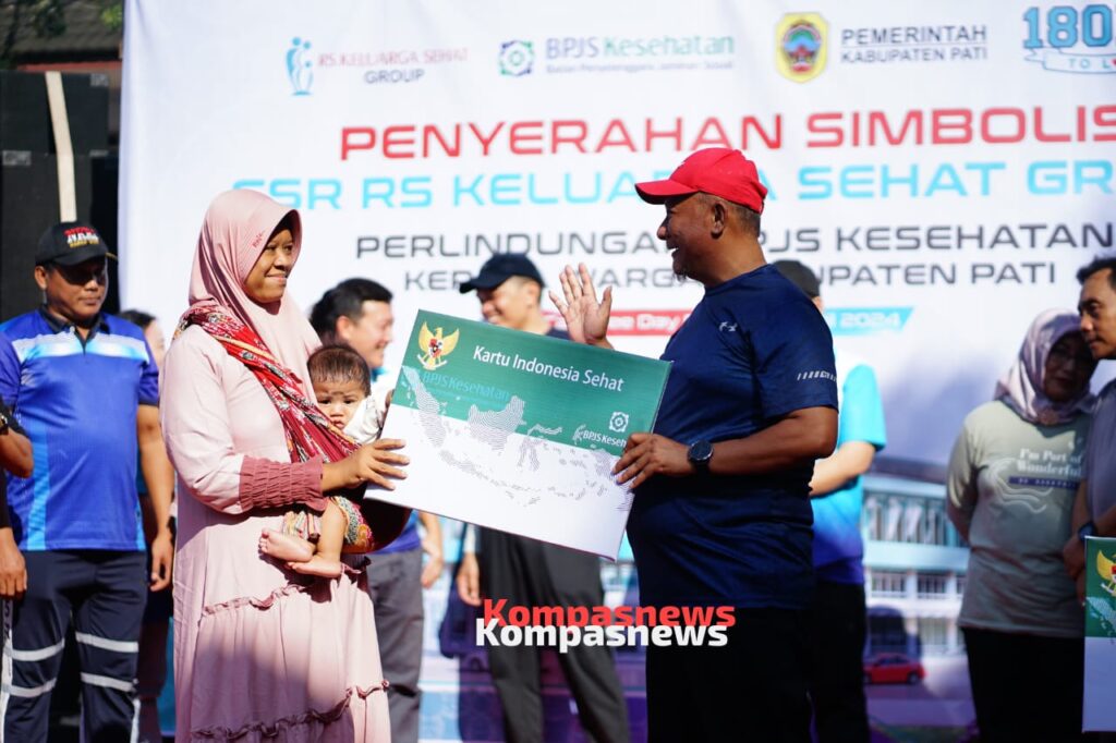 PATI ,Dalam rangka Hari Bebas Kendaraan (CFD) di Pati pada Minggu (22/4/2024), dilaksanakan penyerahan kartu BPJS bagi warga Kabupaten Pati dari CSR RS KSH Group. Acara ini dihadiri oleh Pj Bupati Pati, Sekda, Kepala Dinkes, Direktur RS KSH, Kepala BPJS, dan seluruh direktur rumah sakit di Kabupaten Pati.