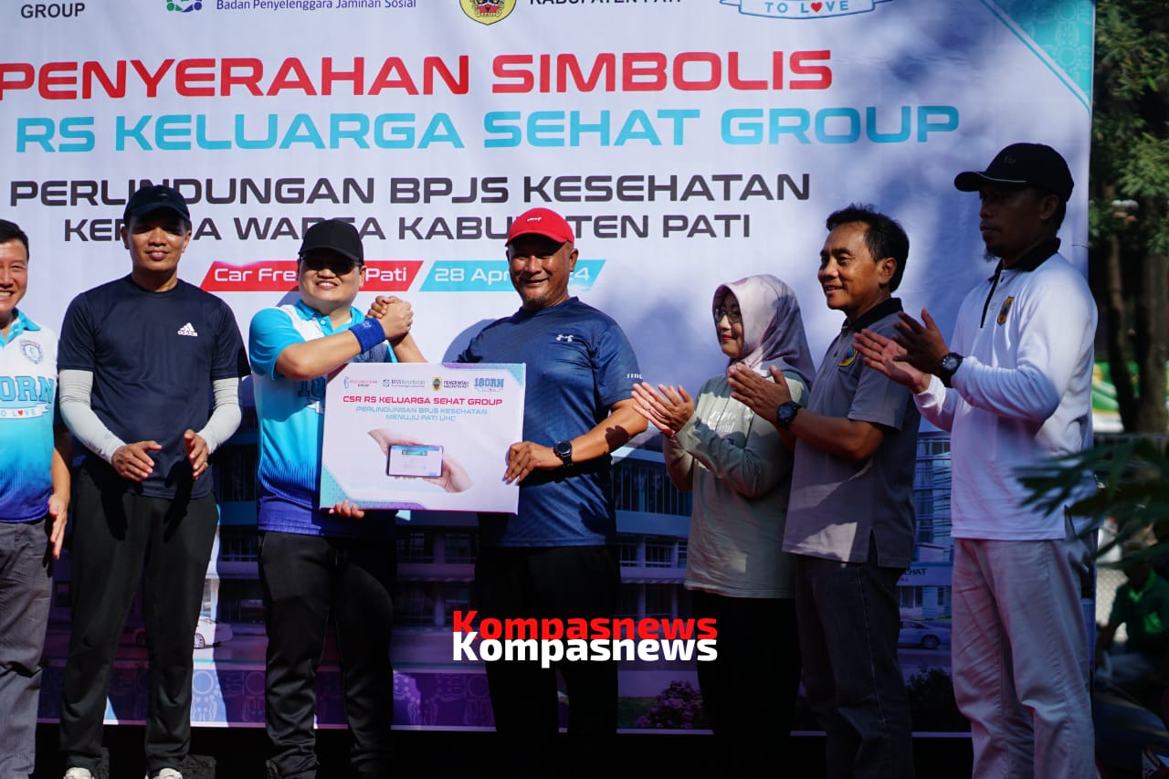 PATI ,Dalam rangka Hari Bebas Kendaraan (CFD) di Pati pada Minggu (22/4/2024), dilaksanakan penyerahan kartu BPJS bagi warga Kabupaten Pati dari CSR RS KSH Group. Acara ini dihadiri oleh Pj Bupati Pati, Sekda, Kepala Dinkes, Direktur RS KSH, Kepala BPJS, dan seluruh direktur rumah sakit di Kabupaten Pati.