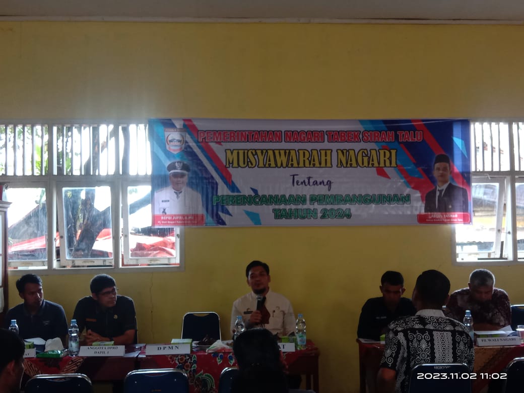 Dengan hasil musyawarahkan bersama di sepakati bahwa prioritas pertama yaitu masalah stunting, acara musyawarah pada hari ini berjalan dengan sukses, berkat kerjasama pemerintah nagari dengan masyarakat nagari Tabek sirah talu.