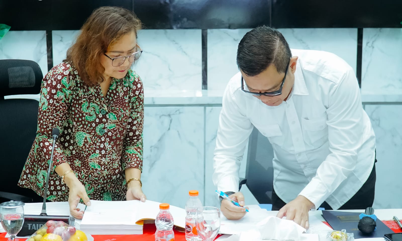 Turut hadir, Penjabat (Pj) Bupati Batu Bara Nizhamul, S.E, M.M, Sekda Norma Deli Siregar, Netty Ratna Juita Sinaga Pengendali Teknis, Rumi Friska Sitanggang Ketua Tim BPK RI Perwakilan Provsu.