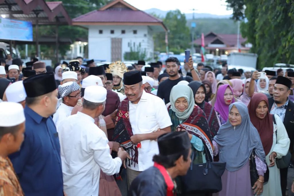 Panyabungan – Pemerintah Kabupaten Mandailing Natal (Pemkab Madina) menyambut kedatangan bupati dan wakil bupati periode 2025-2030 sekaligus menggelar buka puasa bersama di Rumah Dinas Bupati, Desa Parbangunan, Kecamatan Panyabungan, pada Minggu, 23 Maret 2025.