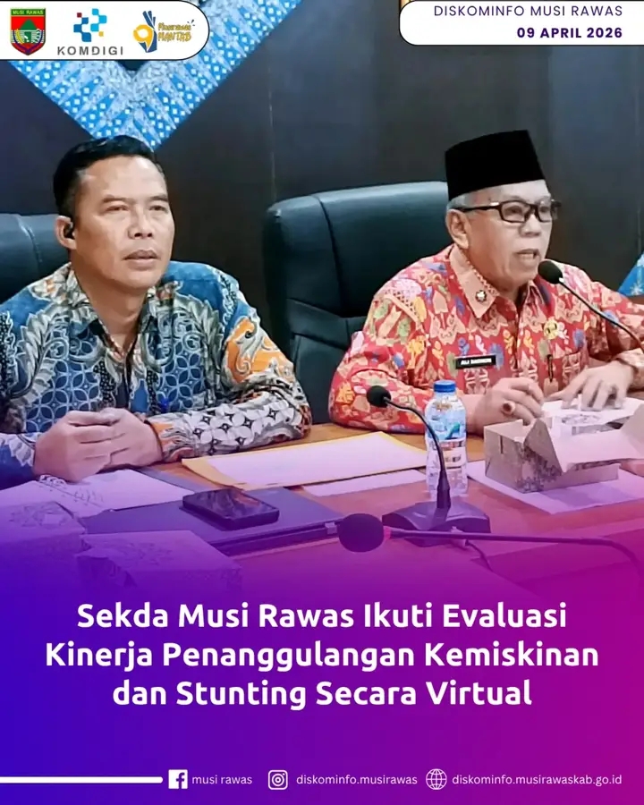 Musi Rawas – Pemerintah Kabupaten Musi Rawas mengikuti kegiatan evaluasi dan penilaian kabupaten berkinerja baik dalam penanggulangan kemiskinan dan penurunan stunting secara virtual melalui video conference, yang berlangsung di Ruang Rapat Bina Praja Setda Kabupaten Musi Rawas, Kamis (09/04/2026).