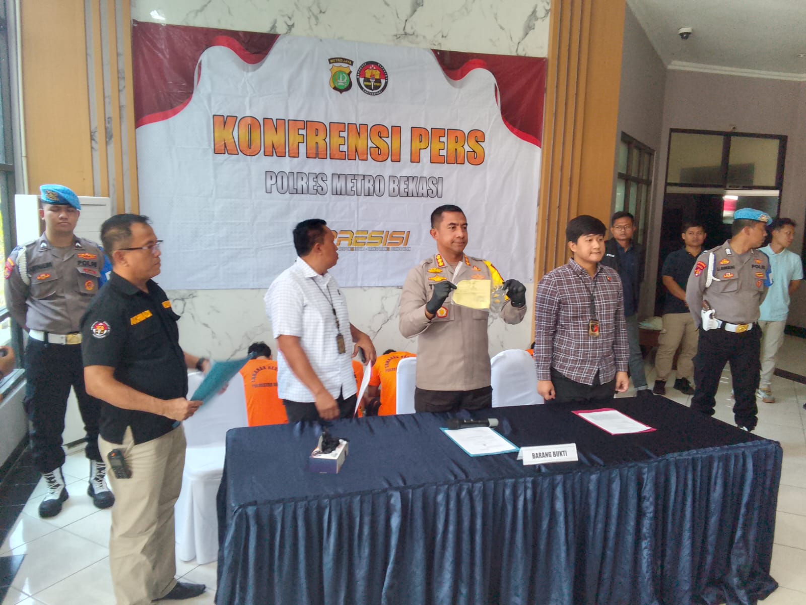 Kab-Bekasi – Kapolres Metro Bekasi, Kombes Pol. Twedi Aditya Bennyahdi, memimpin press release terkait pengungkapan kasus penyekapan dengan penculikan dan pengeroyokan yang berhasil diungkap oleh Unit Jatanras Polres Metro Bekasi. Press Release digelar di lobby utama Mako Polres Metro Bekasi pada Kamis, (30/05/24).