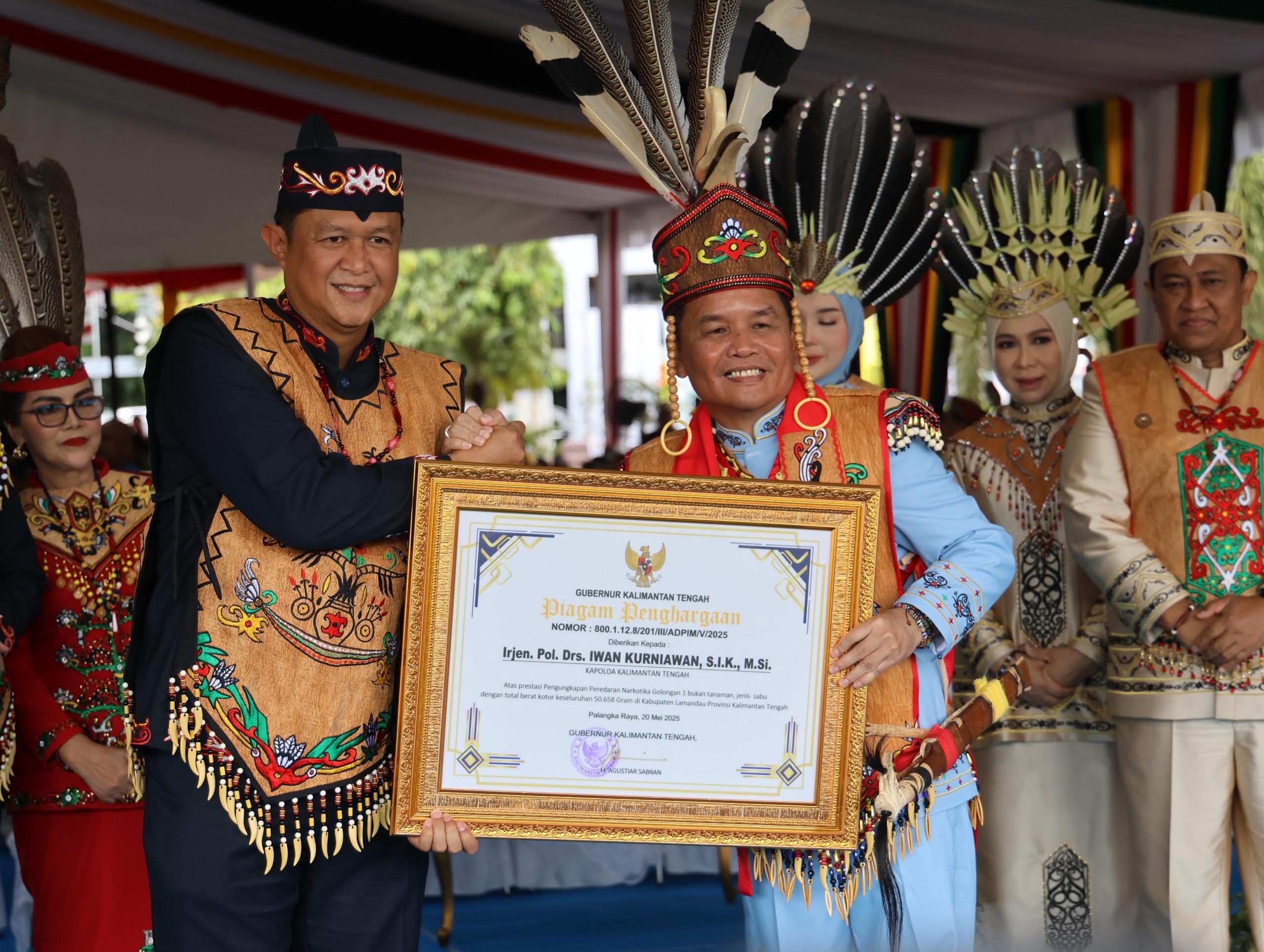Pasalnya, dalam acara tersebut Gubernur Kalteng H. Agustiar Sabran menyerahkan langsung penghargaan kepada Kapolda Kalteng, Irjen Pol Iwan Kurniawan, atas keberhasilan jajarannya dalam mengungkap kasus narkoba di wilayah Lamandau, usai pelaksanaan upacara HUT Kalteng ke-68, di Halaman Kantor Gubernur, Jumat (23/5/2025).