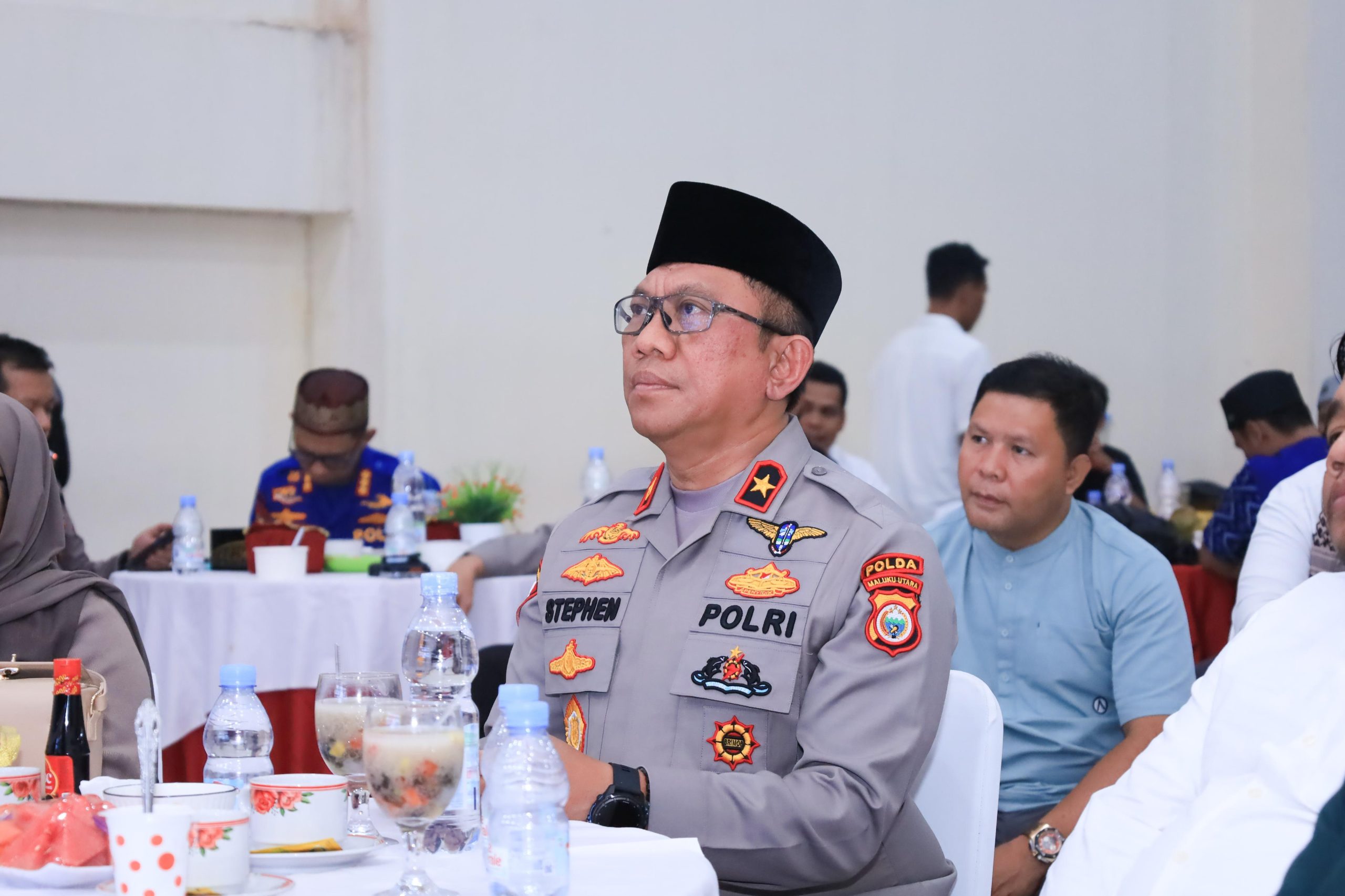 Wakil Kepala Kepolisian Daerah (Wakapolda) Maluku Utara, Brigjen Pol. Stephen M. Napiun, S.I.K., S.H., M.Hum., menghadiri kegiatan buka puasa bersama dengan insan pers yang berlangsung di Aula Kieraha Polda Malut pada Kamis (13/3/2025).