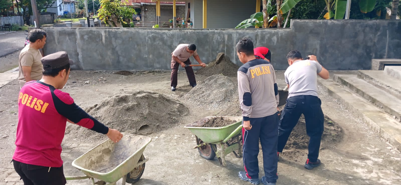 “Jadi Anggota memindahkan pasir ke samping Masjid Al-Mujahidin Desa Mandaong agar tidak menggangu masyarakat ketika melaksanakan sholat,”Tandasnya