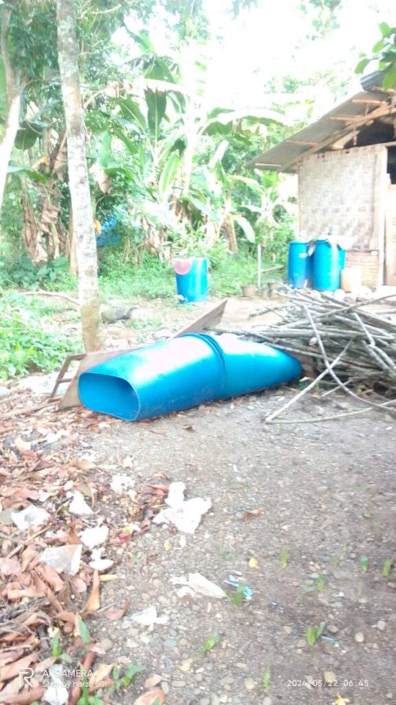 Sayang.seharus nya parit tersebut memakai bahan riol beton, oleh bapak Kadus di tukar dengan Drum yg terbuat dari Plastik. Ada apa ini….?