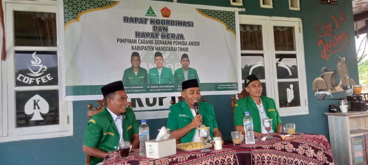 MATIM, Kompasnews.co.id- Pimpinan Cabang Gerakan Pemuda Ansor Kabupaten Manggarai Timur menggelar rapat koordinasi ke-1 di Cafe Rana Loba Borong, Kabupaten Manggarai Timur. Kamis, (19/09/2024) sore hari.